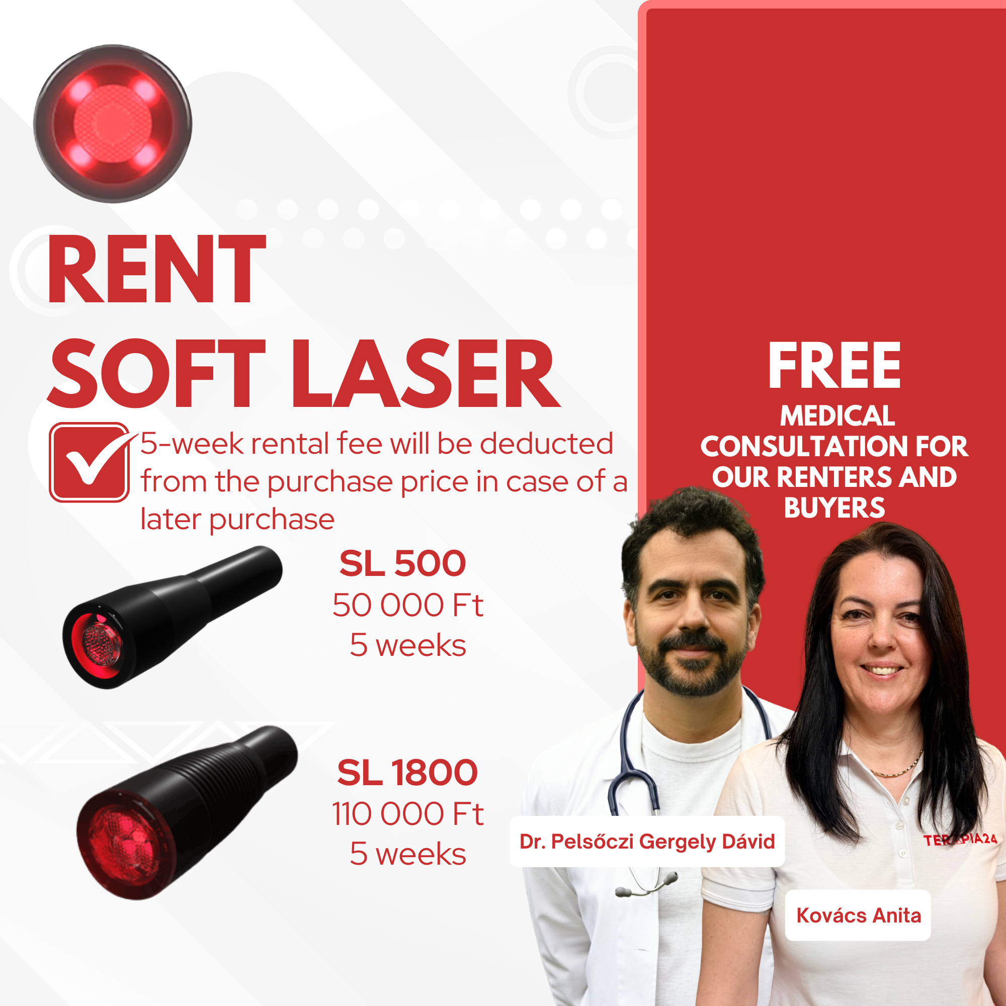 - Dr. Gergely Dávid Pelsőczi provides free Safe Laser medical consultation for our renters and buyers.