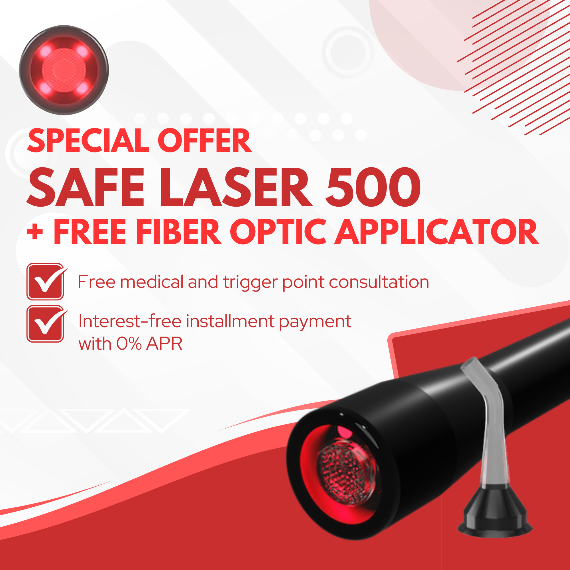 - Wavelength: 4x 808 nm laser + 630 nm LED (infrared laser light)