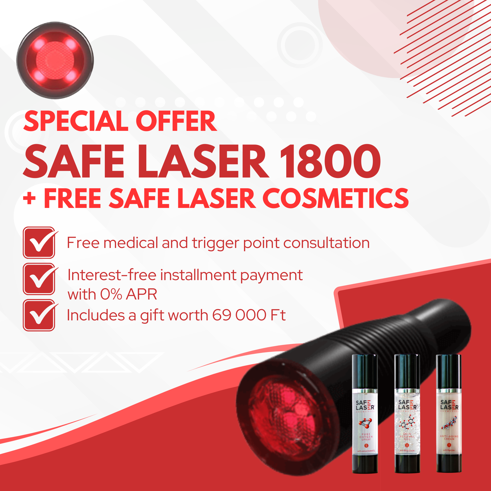 In the video below, Dr. Gergely Pelsőczi, our medical professional leader, introduces the Safe Laser 1800 device, comparing it to the Safe Laser 500 device. The difference is not only in the size of the treatment area; it is worth watching the video before purchasing or renting.