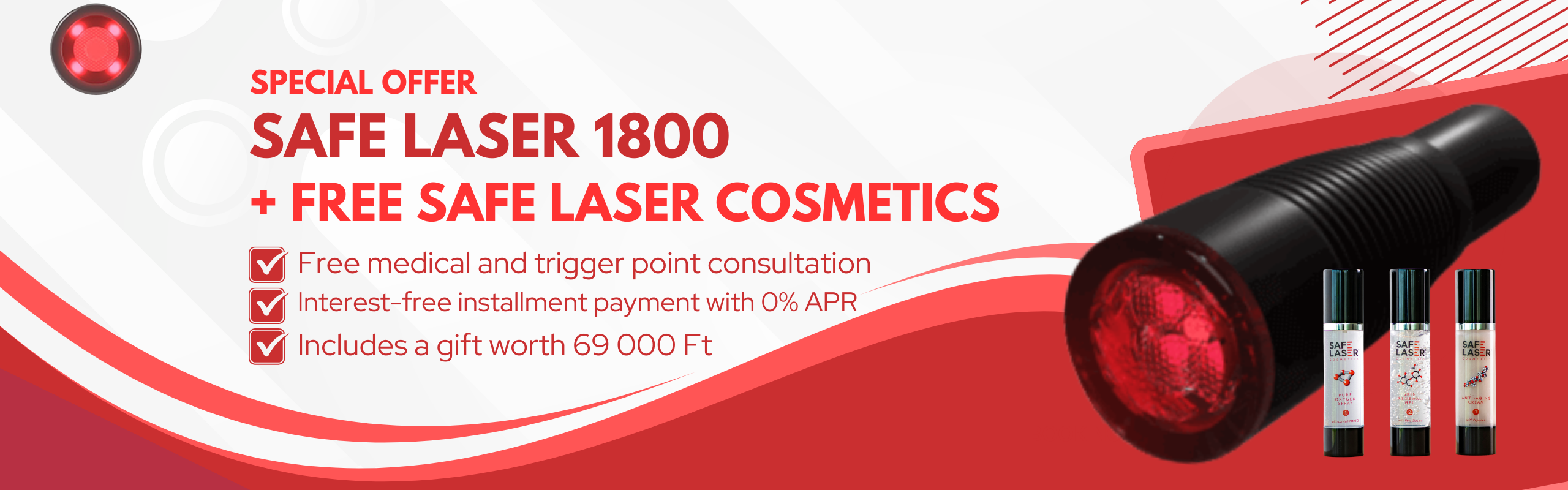 The infrared (808nm) light of the Safe Laser 1800 is absorbed in much deeper layers than red light lasers (its biological effect is evident up to 10 cm deep), making it excellent for the therapy of musculoskeletal diseases, for example, where it has pain-relieving and anti-inflammatory effects and accelerates the healing of muscles, tendons, and joints. The Safe Laser 1800 is the most powerful Safe Laser device, belonging to the high-end category of soft lasers due to its 1800 mW power. Numerous clinical studies and practical experiences show that this power is also suitable for regenerating joint cartilage surfaces and cartilage. You can try the device in our showroom at Páva utca 27, Budapest 9th district, or call our customer service for free consultation, Monday to Friday 8:30 AM – 5:30 PM, Saturday 9:00 AM – 1:00 PM.