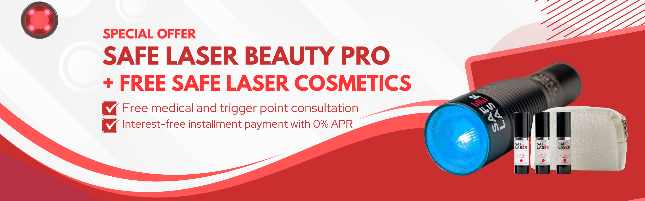- The laser light of the Safe Laser 500 device penetrates 8 cm deep into the tissues, where its pain-relieving and anti-inflammatory effects accelerate healing. It is also suitable for regenerating joint cartilage surfaces.
